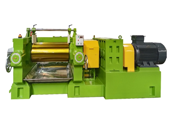 本机为两辊卧式结构,工作时通过强力调紧辊筒对物料进行剪切和挤压,并在高温的作用下,将材料出成超薄厚度的片(约0.10mm),然后卷取称重入库待用。因产品厚度和产能的需求,机器对工作辊筒的参数和强度,轴承承载力以及传动效率都做了特别要求,确保使用效果。本机分多种规格,用户根据产能需求选择。